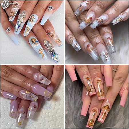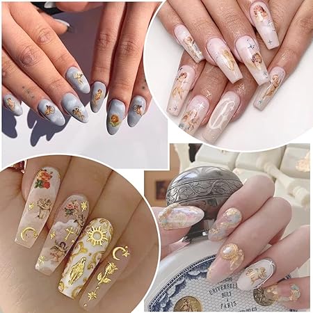 • Easy to Use: Angel nail decals is self-adhesive and don't need to use glue, just use tweezers to peel off the nail self-adhesive paper and stick the decal on the nail. You can use nail gel to cover to make the beautiful stickers last longer.