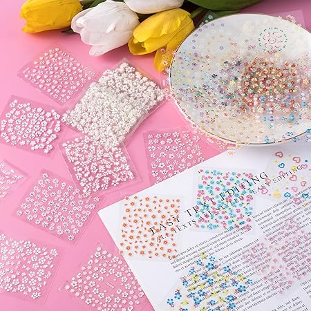 40 Sheets Colorful Heart Flowers Nail Art Sticker Spring Summer 3D Self Adhesive Floral Daisy Decals Valentine Wedding Prom Decoration for Acrylic Nails Women Girls DIY Manicure Salon