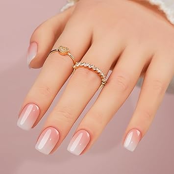 • Stylish Designs: Featuring a classic with pink white gradient design, these short coffin fake nails add a touch of elegance to any outfit or occasion