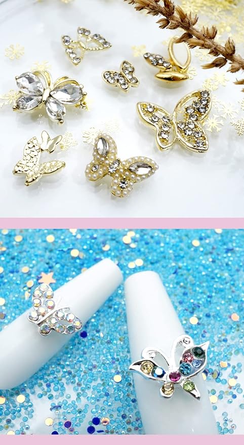 3D Butterfly Nail Rhinestones 20 Pcs Crystals Diamonds Large Bow Silver Metal Charms Gems Stones for Art Beauty Design Decoration Craft Jewelry DIY