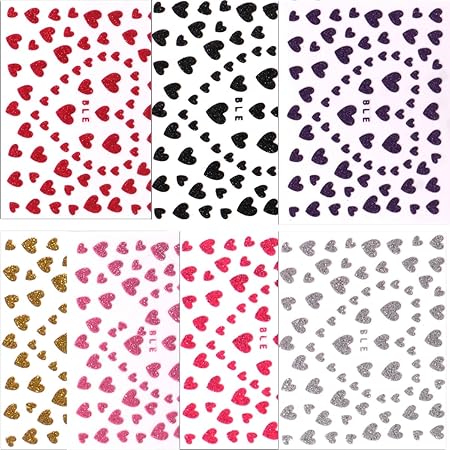 7 Sheets Heart Love Nail Art Stickers Decals 3D Self-Adhesive Valentines Supplies Decorations for Women and Girls