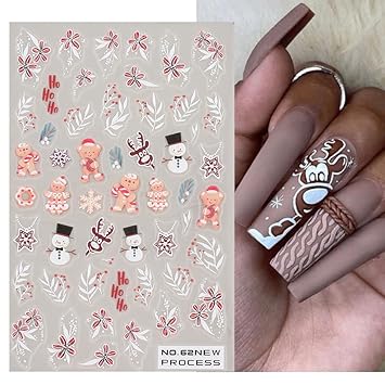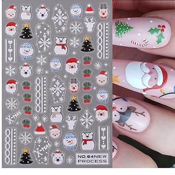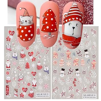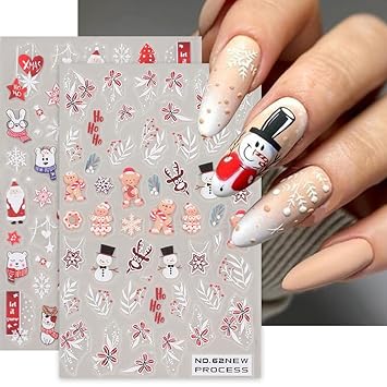 6 Sheets Christmas Nail Art Stickers Snowflake Santa Claus Self-Adhesive DIY Decals for Red White Cute Design Decoration Party Supplies