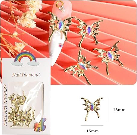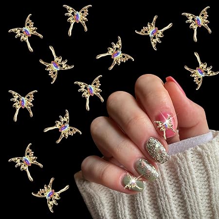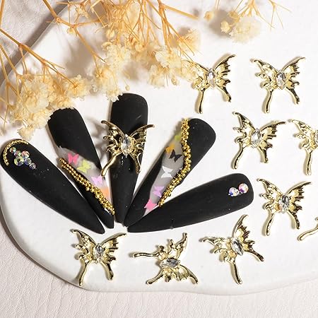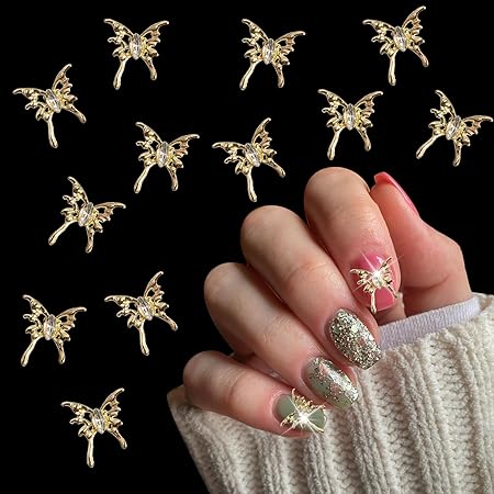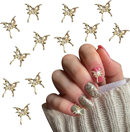 - 12pcs gold nail butterfly charms, enough quantities and shiny rhinestones.