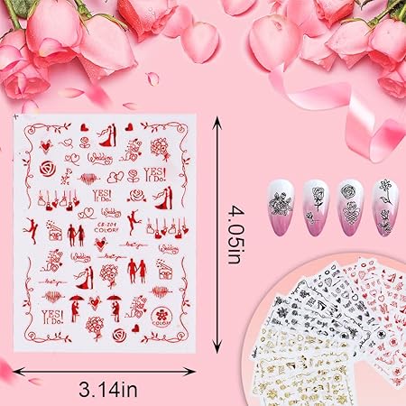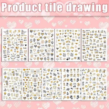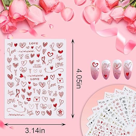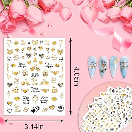 Package Includes: 9 Sheets x Valentin Nail Art Self-Adhesive Decals Set