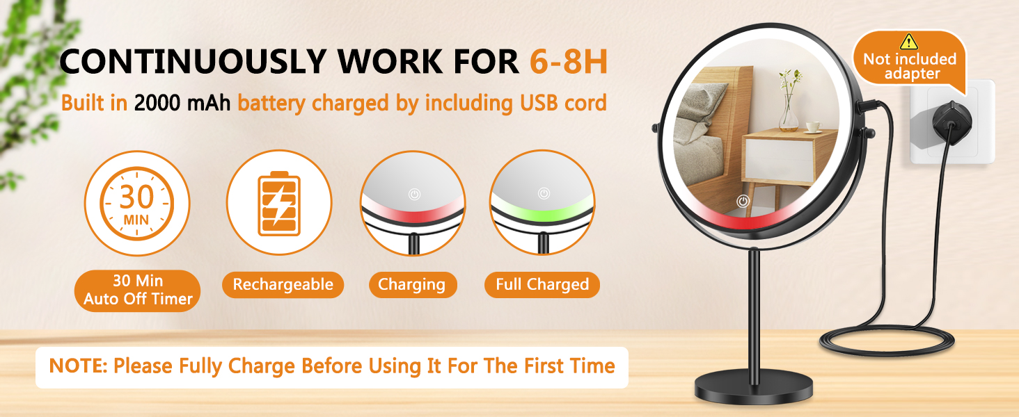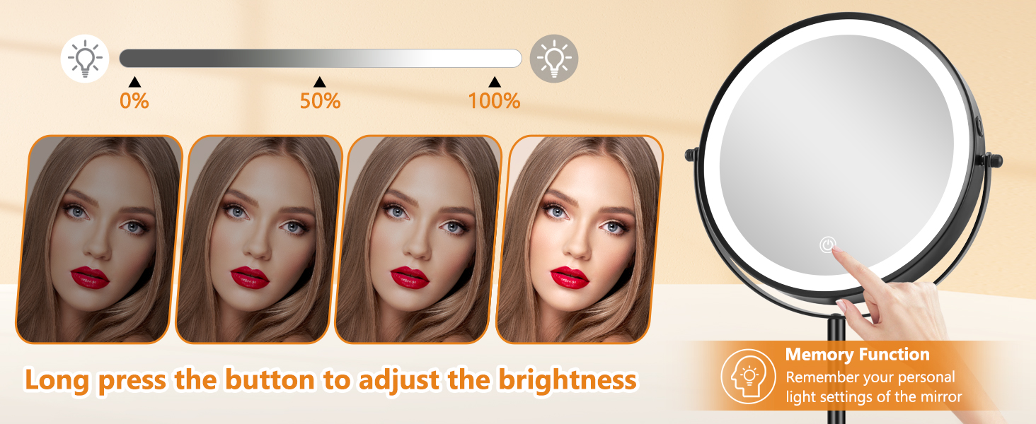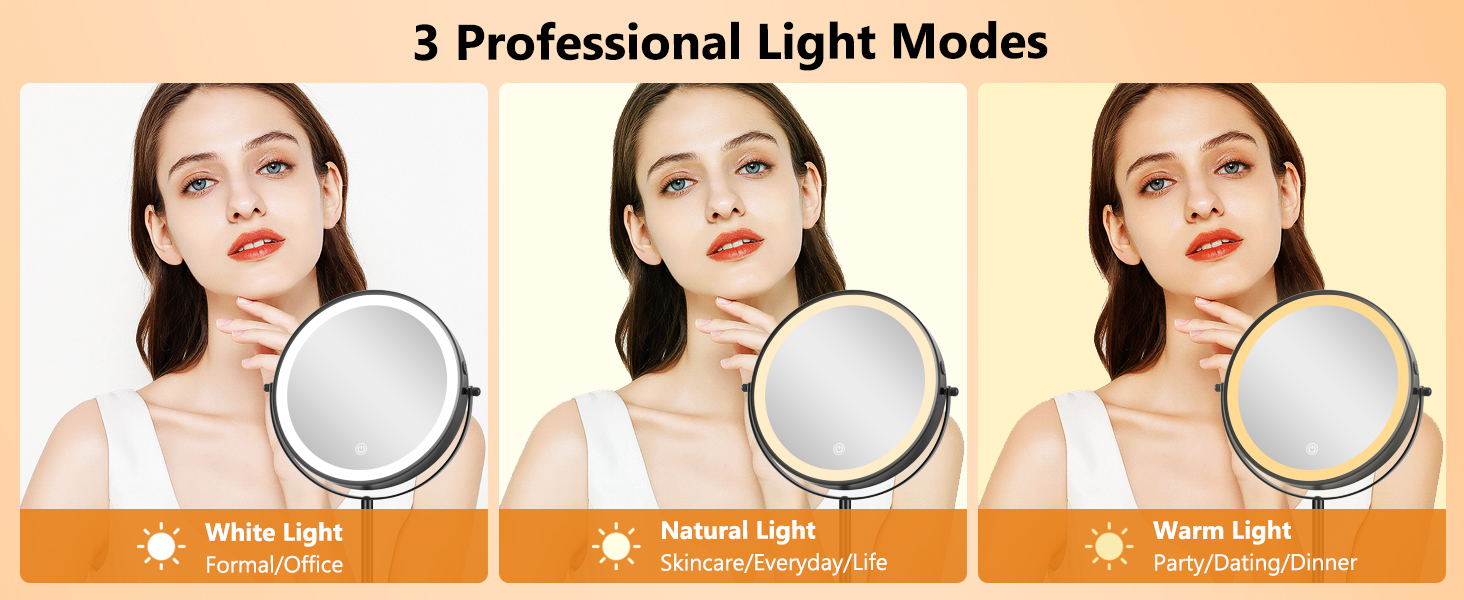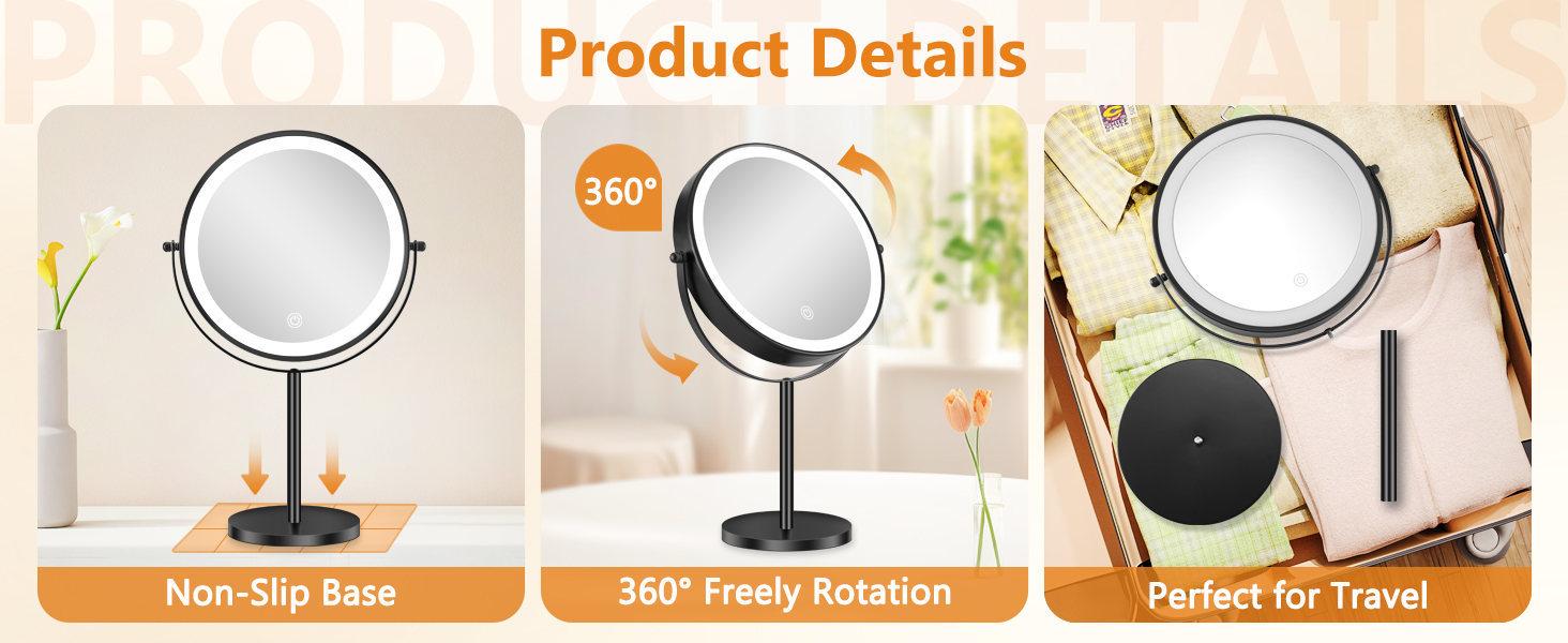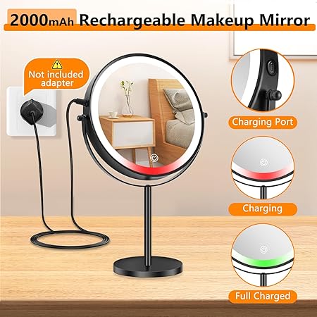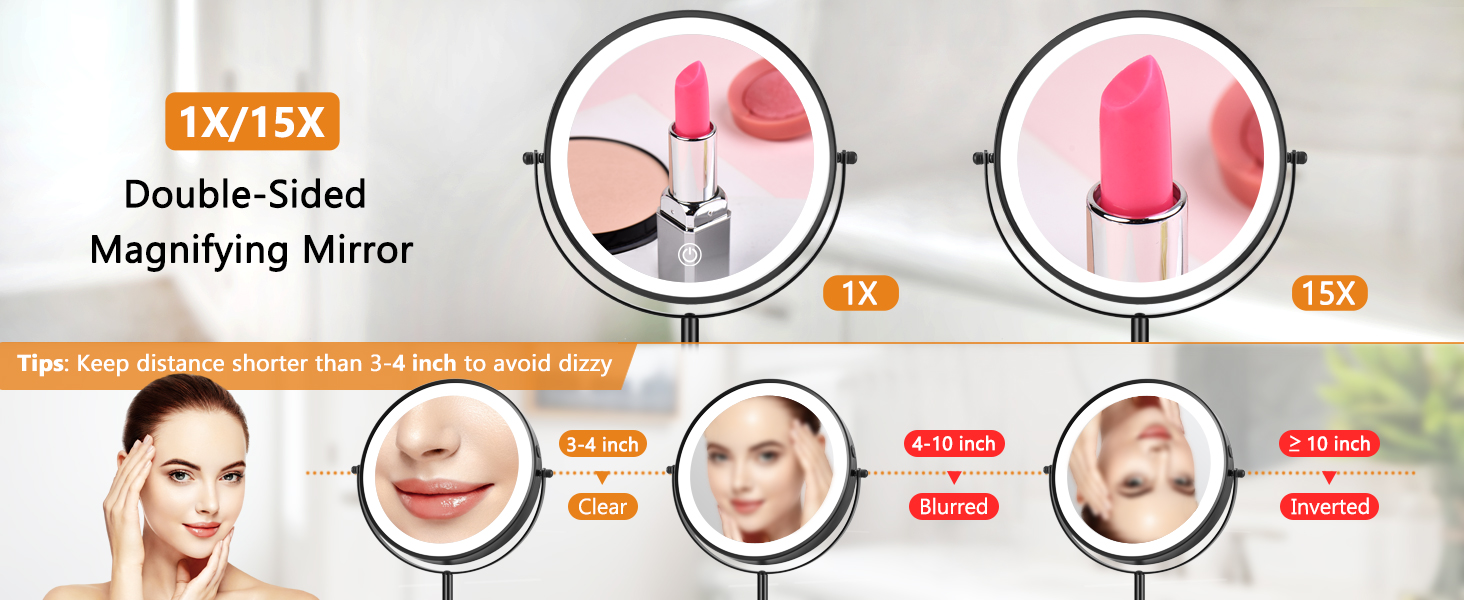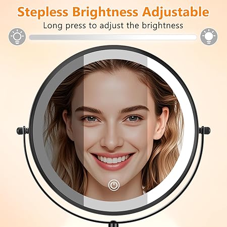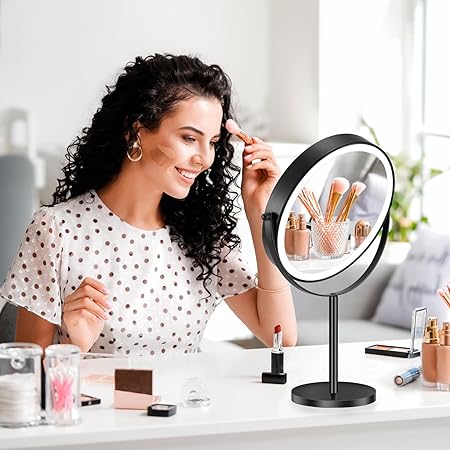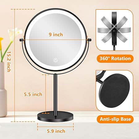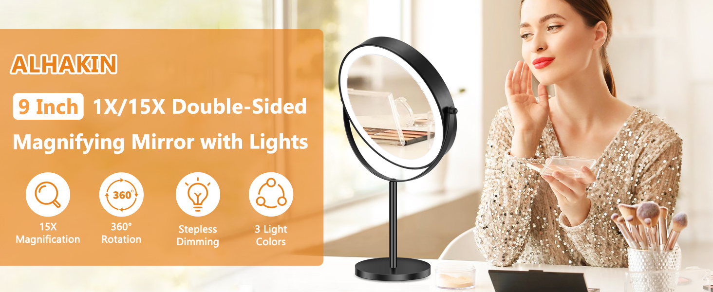 ALHAKIN 9" Lighted Makeup Mirror, 1X/15X Magnifying Mirror with Light Double Sided, Large Size 360°Rotation Magnification, 3 Colors Brightness Adjustable Vanity
