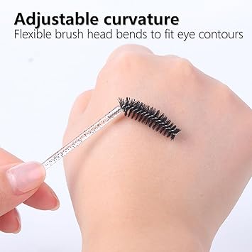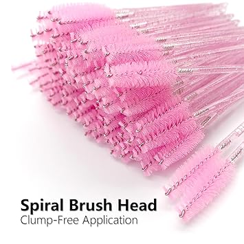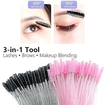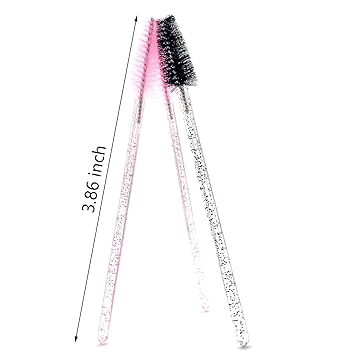 200 Pcs Disposable Mascara Wands, Spiral Lash Brush Applicators with Crystal Handles, Spoolies for Eyelash & Eyebrow Makeup, Makeup Tools in Black and Pink