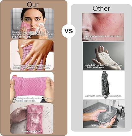 • Rich Lather Creation: The textured pouch quickly produces a rich, luxurious lather, similar to a loofah, enhancing your shower experience while conserving soap. The ergonomic palm-size design ensures ease of use.