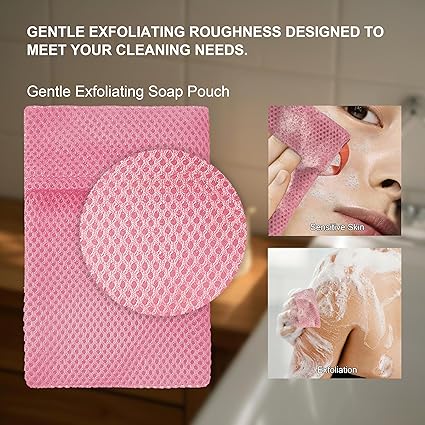 2 Pack Soap Bag Gentle Roughness,Bar Pouch Saver Pocket,Body Scrubber Shower Sponge Loofah,Exfoliating Bath (Pink)