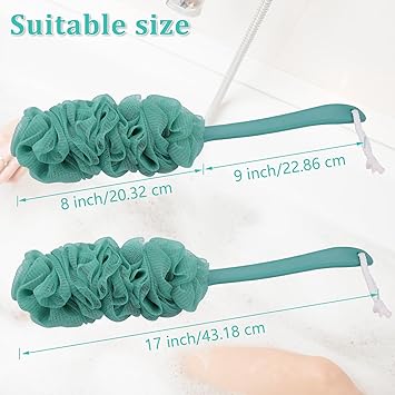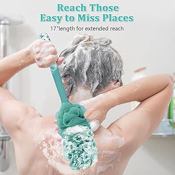 - 【Extra Long Handle】The bath brush is 17 inches long and ergonomically designed. This length helps to reach every part of the body, making it easy to massage. The extra-long handle can clean places that cannot be reached on the back, and can also clean the legs and hands.
