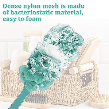 - 【High Quality Nylon Mesh & Handle】The back scrubber for shower is made of high quality nylon mesh, soft and flexible material handle. The mesh is very fine and can easily produce rich foam. Just use a little shower gel and soap to lather up and enjoy the comfort of showering, enjoy your skin massage.