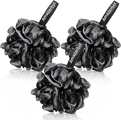 Amazerbst 4 Pack Bath Sponges Mesh Balls Shower Loofahs Wash Back Body Cleaning Scrubber Exfoliator Loofah Sponge Bathing Accessories Women Men
