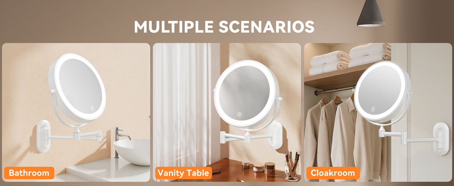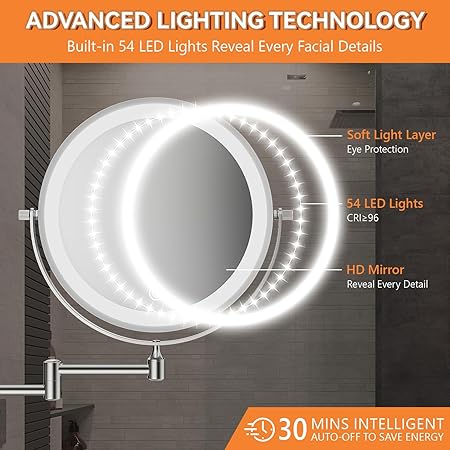 - ๐ฏ๐ฒ๐ฌยฐ๐ฆ๐๐ถ๐๐ฒ๐น ๐๐ ๐๐ฒ๐ป๐ฑ๐ฎ๐ฏ๐น๐ฒ: It can be rotated 360ยฐ. The illuminated wall-mounted mirror with an extendable arm allows you to position your mirror for perfect viewing. Easily adjust the arm to your desired angle. When not in use, simply fold the mirror against the wall to save space.