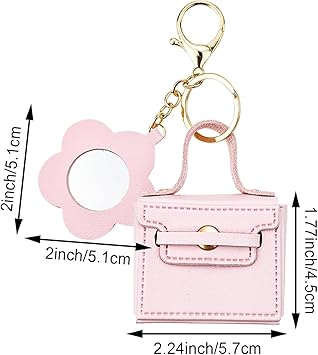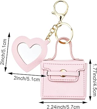 4PCS Super Smalls Makeup Bag with Mirror Mini Makeup Bag for Women, Coin Wallet, Bag Charms Y2k Accessories Cute Leather Keychain (Style 4)