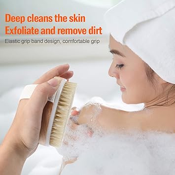 Body Bath Brush for Wet or Dry Brushing,Round Exfoliating Brush,Gentle Massage Nodes,Natural Bristles Improves Lymphatic Functions, Exfoliates, Stimulates Blood Circulation