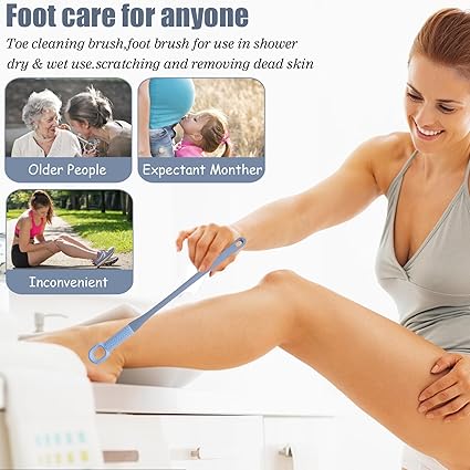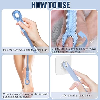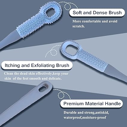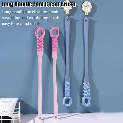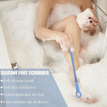 2 PCS Toe Cleaning Brush,Silicone Foot Scrubber Exfoliating Brush for Shower Handle Soft Bath Feet Cleaner Scrub Care Seniors,Elderly, Men and Women 15.7"-Blue