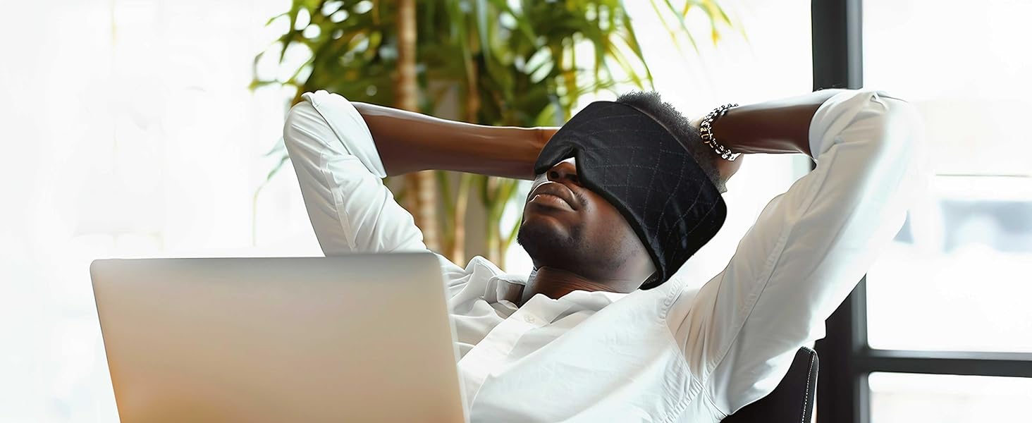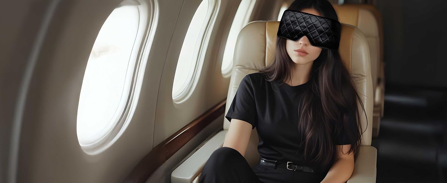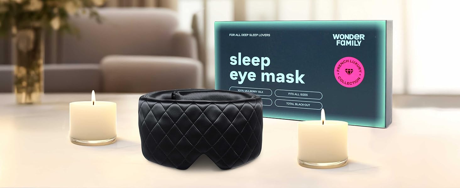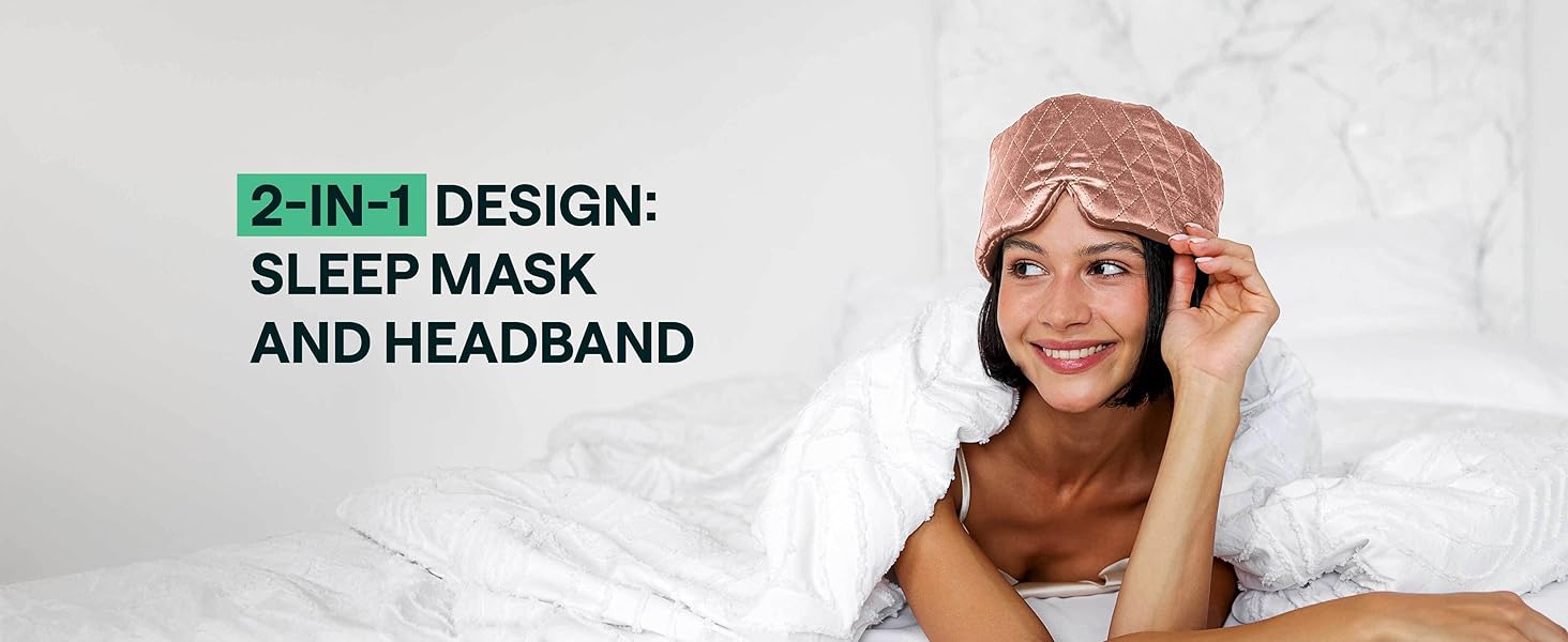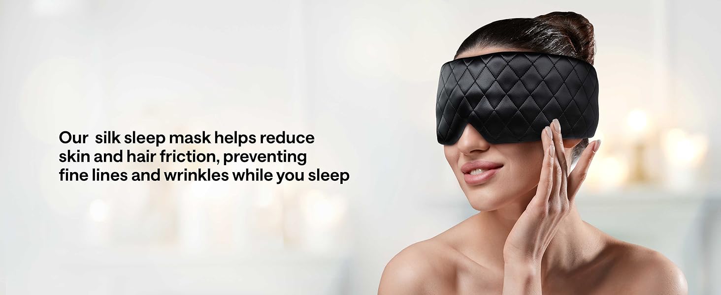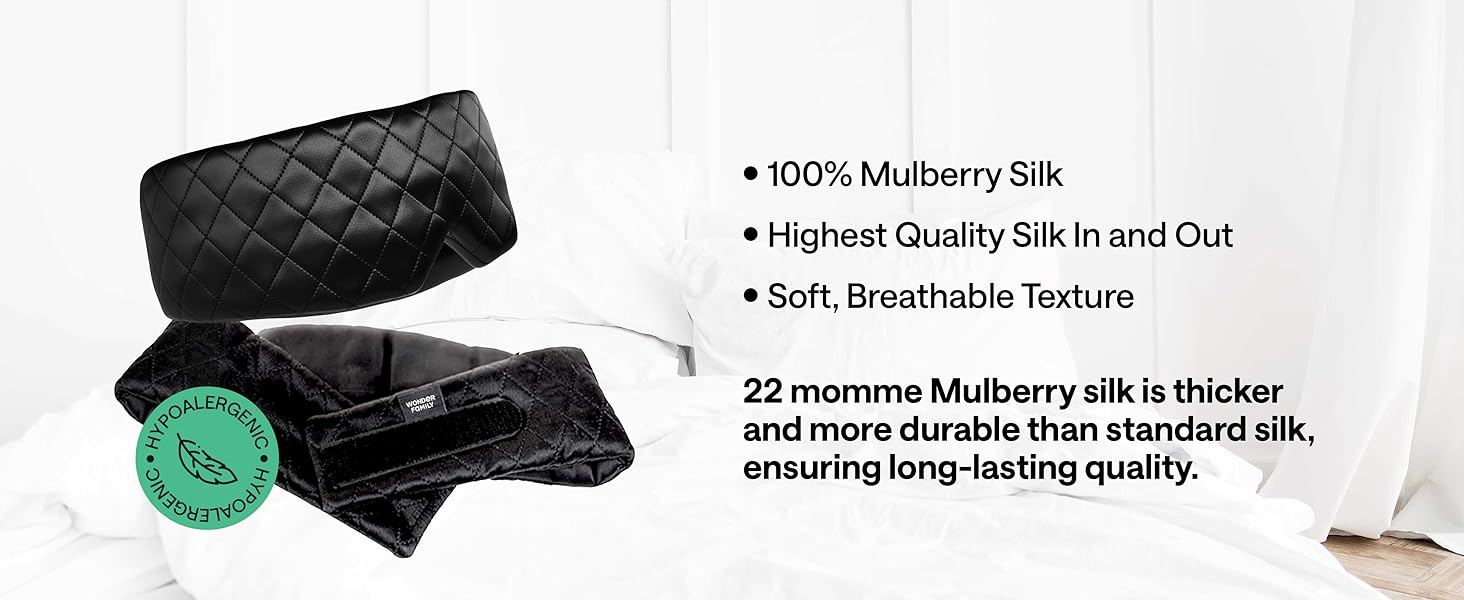 100% Mulberry Silk Sleep Mask for Women & Men - Black Blindfold Eye Cover with Adjustable Straps Night Time Wrap Headband Washing Face Blackout Hair