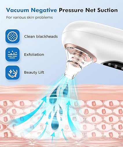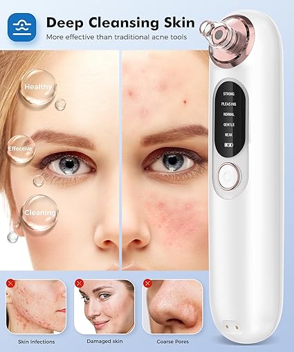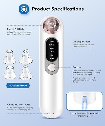 5-Speed Blackhead Remover for Sensitive Skin, Wireless Charging Face Pore Cleanser with 4 Removable Heads and Stainless Steel Kit | 30-Second Keratin Softening, Hypoallergenic Deep Cleansing