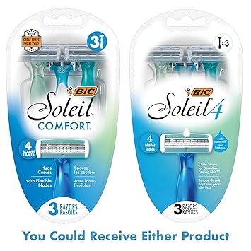 BIC Soleil Comfort 4-Blade Disposable Razors for Women Sensitive Skin Razor a Smooth and Close Shave, 3 Piece Set
