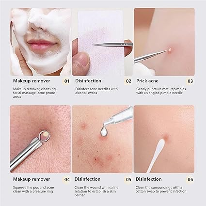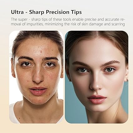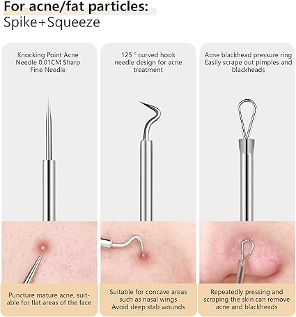 9 - Piece Stainless Steel Acne Tool Set Complete Kit with Ultra Sharp Tweezers, Needles for Effective Blackhead & Removal