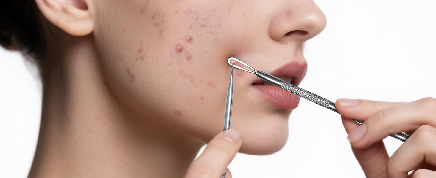 - Safe Pimple Removal: Includes 1 hair tweezer, 1 cleaning spatula and 4 different blackhead remover tools with loop, curved, and pointed tips to effectively remove blackheads, whiteheads, and pimples with minimal irritation. A cleaner, safer alternative to squeezing with fingers