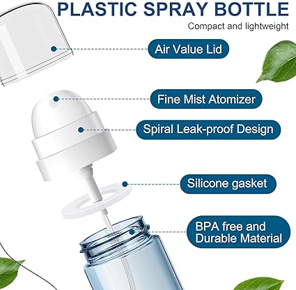 2 Pack 60ML Small Spray Bottle, Portable Refillable Travel Bottle for Hair, Cleaning, Beauty, Fine Mist, Leak Proof, Lt. Blue and Green