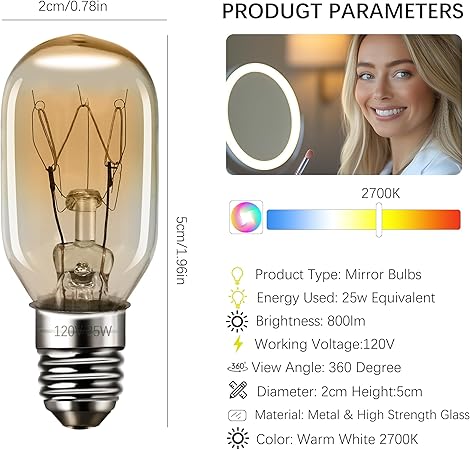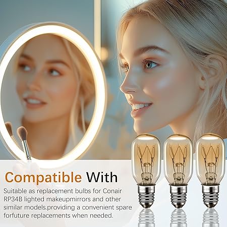 2 Pcs 120V 25W 2700K Makeup Mirror Light Bulb Compatible with for Conair RP34B & Similar Illuminated