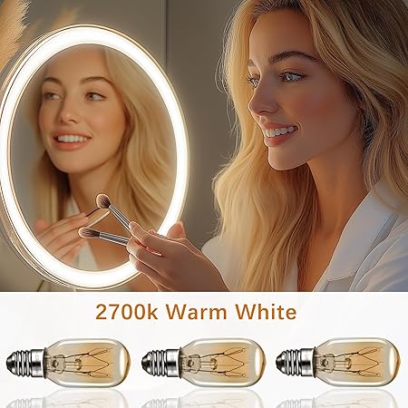 • 2700K Warm White Light - these bulbs provide ample lighting for clear visibility while applying makeup or grooming.