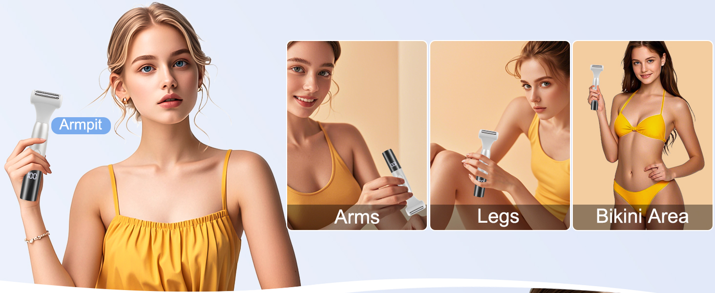 • Painless & Smooth Shaving: Designed with hypoallergenic blades, our bikini razor is safe for even the most sensitive skin. The bikini trimmer gives you a precise and smooth hair-shaving experience without the discomfort of skin pulling, irritation, injuries, and pain. Plus, Goose Bumps caused by hair removal will be a past.