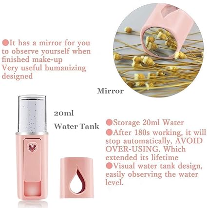 • 【 Wide Application & Multiple Charging Options】The facial care mister produces an ultra-fine nano-ionized mist. Slide the switch to dispense the mist in one second. The facial care steamers is perfect for moisturizing the face, body, hair, eyelash extensions, and daily makeup. The mini face mister can also relieve symptoms of allergic rhinitis and nasal congestion, and soothe tired eyes. You can charge the face mister anytime with powerbank, laptop, power outlet, or car charger.