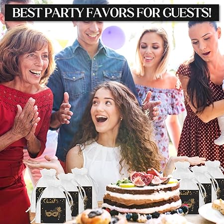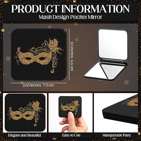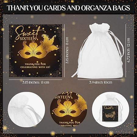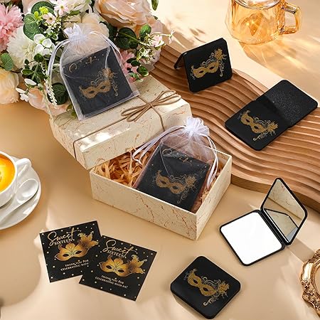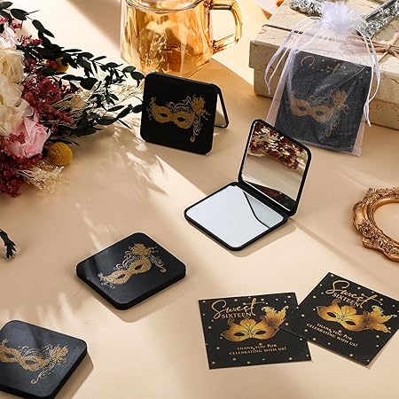 18 Set Masquerade Party Favors for Guests Sweet 16 Gifts Bulk Include Plastic Mask Design Compact Mirrors Thank You Cards Organza Bags Ball Decor Girls Quinceanera Birthday