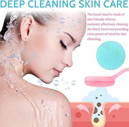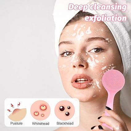 2Pack Silicone Face Scrubber Manual Wash Facial Scrub Brush, Skin Friendly Cleansing Brush Exfoliating Cleanser for Women Blackheads Whiteheads Makeup Skincare Removal(Blue, Pink)