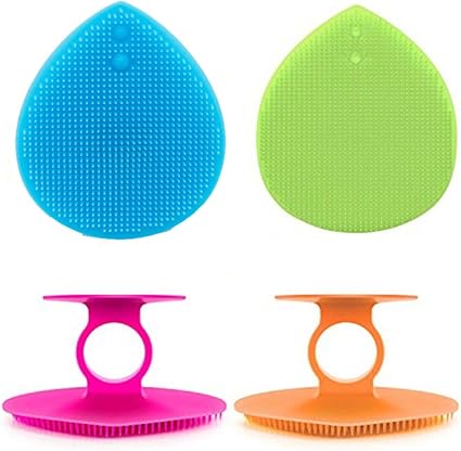 4pcs Silicone Face Scrubbers Heart Shape Blackhead Cleansing Brush with Suction Cup for Pore Removing Blackheads (Orange,Rose,Blue,Green)