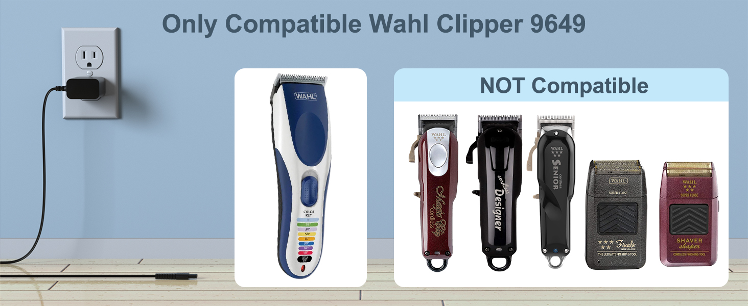 • [Compatible Models] This clipper charger compatible with Wahl Color Pro Cordless Rechargeable Hair Clipper & Trimmer 9636-700 9636-2201 79434 9649 9649P. Please Note:not for 8163/8061/8164 / 8591 / 8148 / 8504 Trimmer