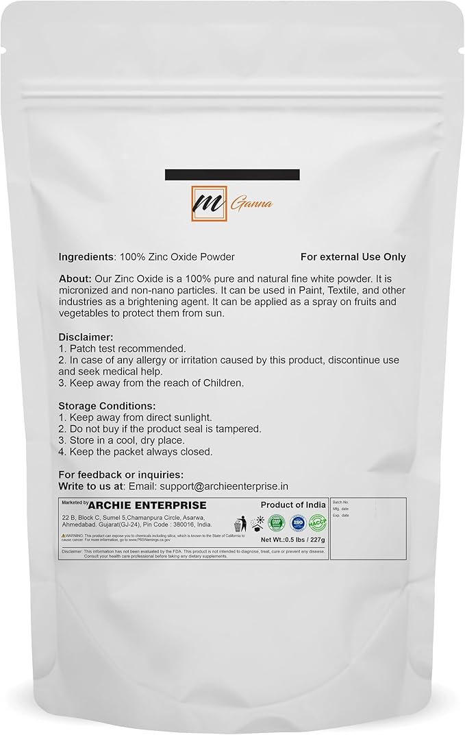 100% Natural Zinc Oxide Powder | Micronized Non-Nano Uncoated Particles 0.5 LBS / 227 GMS