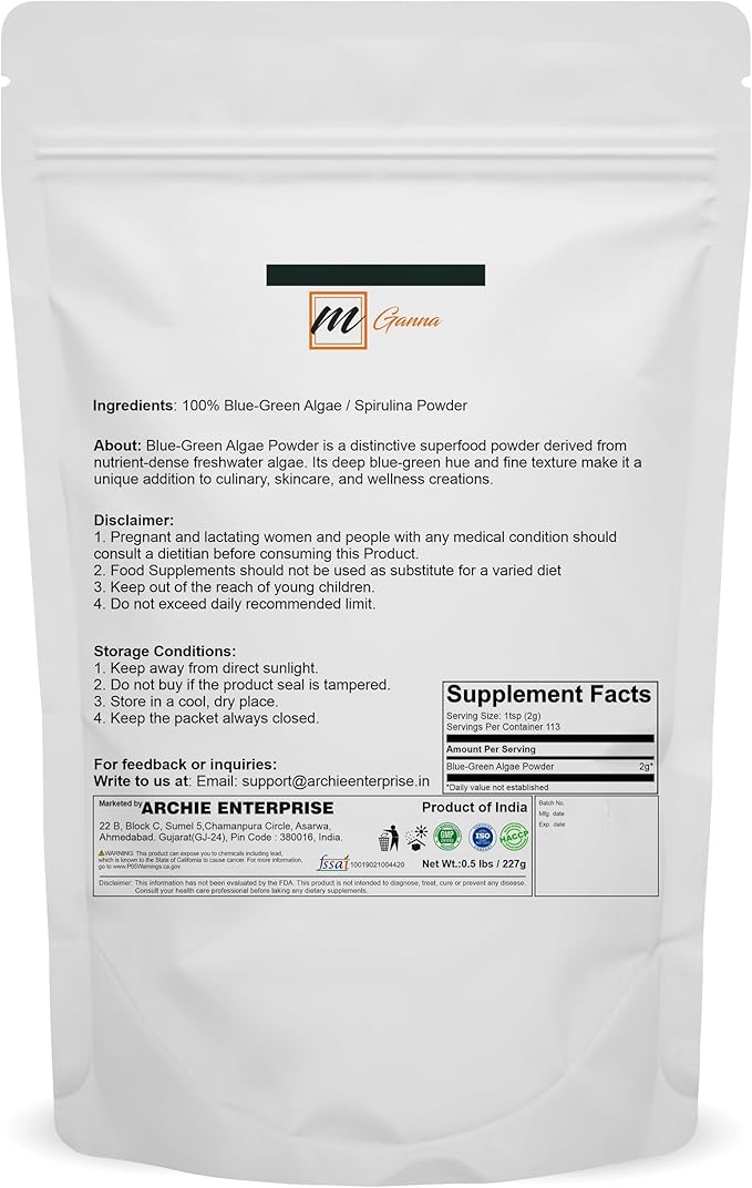 100% Spirulina Powder/Blue Green Algae Powder 0.5lbs / 227 g