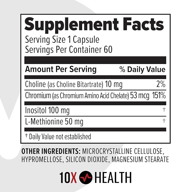 10X Health MIC Chromium Supplement with Choline, Inositol & L Methionine - 60 Capsules