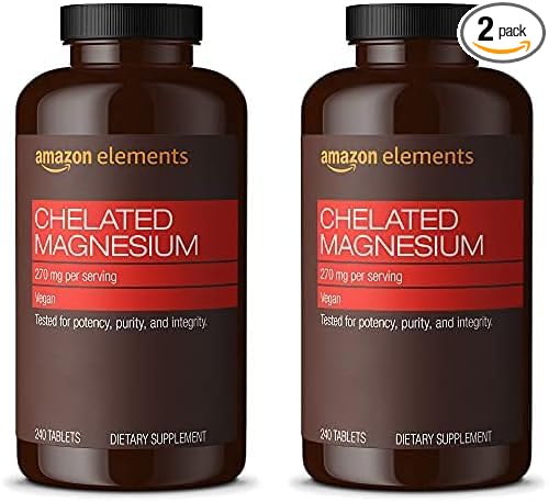 Amazon Elements Chelated Magnesium Glycinate (240 Tablets) and Vitamin D3 (180 Softgels)