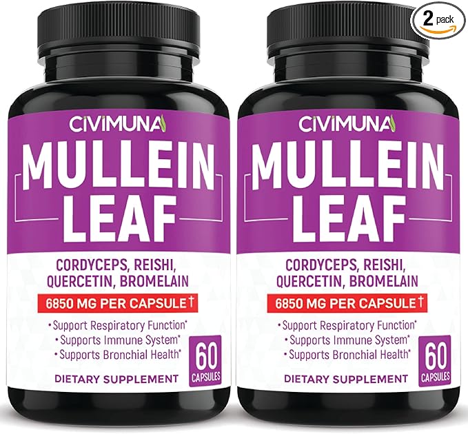 (2 Packs) Mullein Leaf Capsules 6850mg - Mullein Leaf, Cordyceps, Reishi - 4 Months Supply