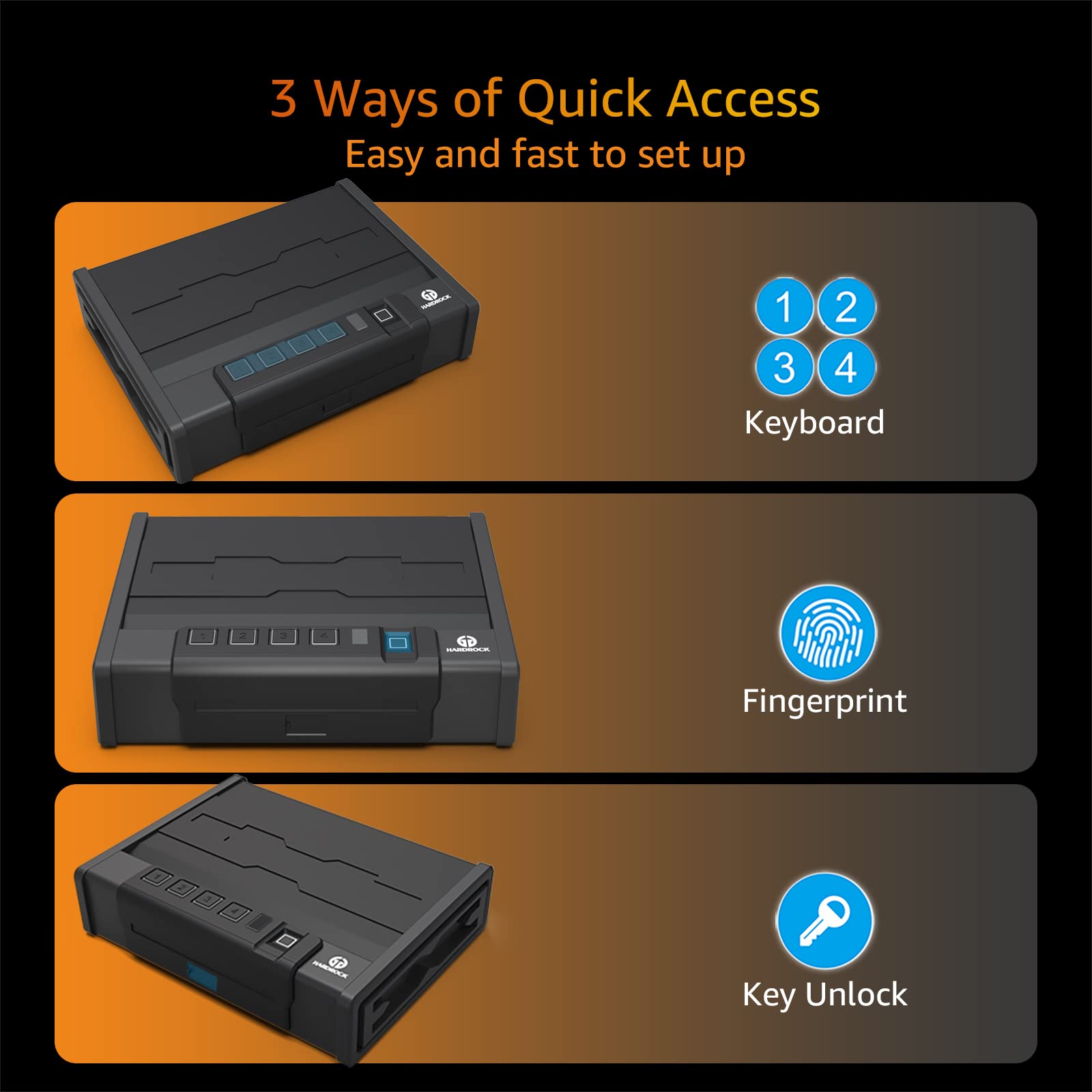 Details: HARDROCK Gun Safe for Pistols, Biometric Wall Mounted Handgun Safe box for Desk, Bedside,Truck,Drop Down Quick Access Security Safe with Fingerprint Keypad Lock for Home nightstand…