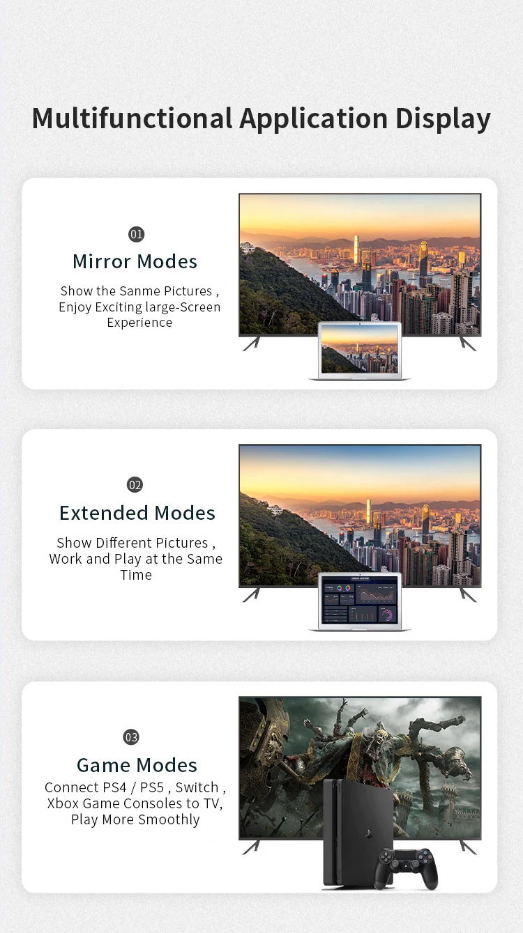 • Backward compatible with earlier versions of HDMI and can be used with any HDMI devices.