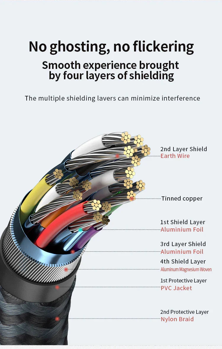 4K HDMI Cable High Speed 18Gbps HDMI-Compatible 2.0 Cable HDR 3D Braided HDMI Cord ARC Compatible for MacBook Pro 2021 UHD TV Projector PC