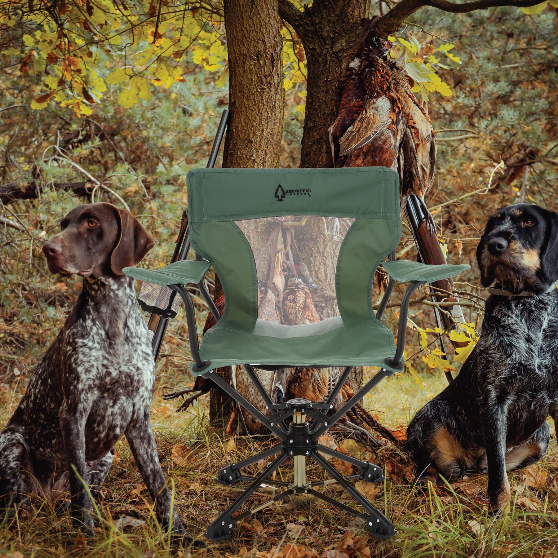 Details: ARROWHEAD OUTDOOR 360° Degree Swivel Hunting Chair Stool Seat w/ Armrests, Perfect for Blinds, No Sink Feet, Supports up to 450lbs, Carrying Case, Steel Frame, Fishing, High-Grade 600D Canvas, USA-Based Support (Forest Green)
