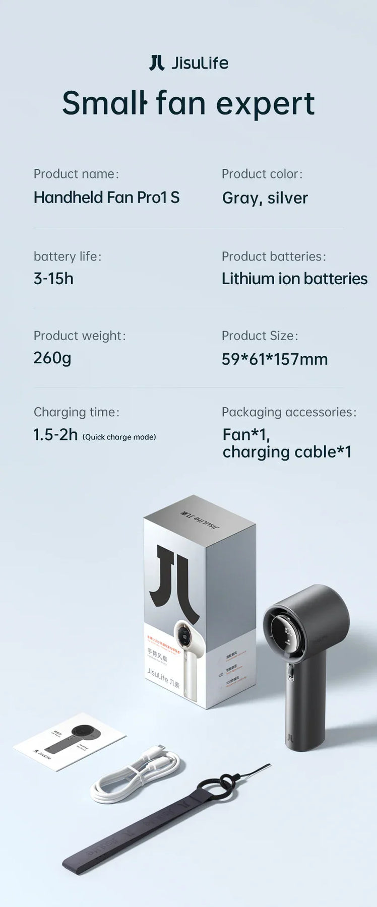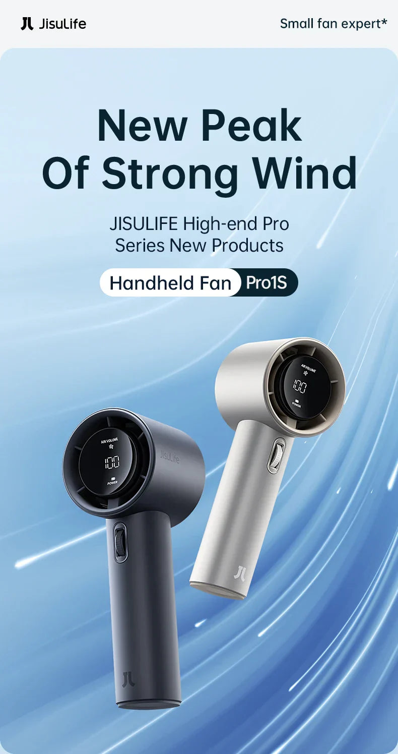 JISULIFE Mini Portable Hand Fan, 100 Wind Speeds, 5000mAh USB Battery Rechargeable, LED Digital Display, Travel,Camping,Outdoor