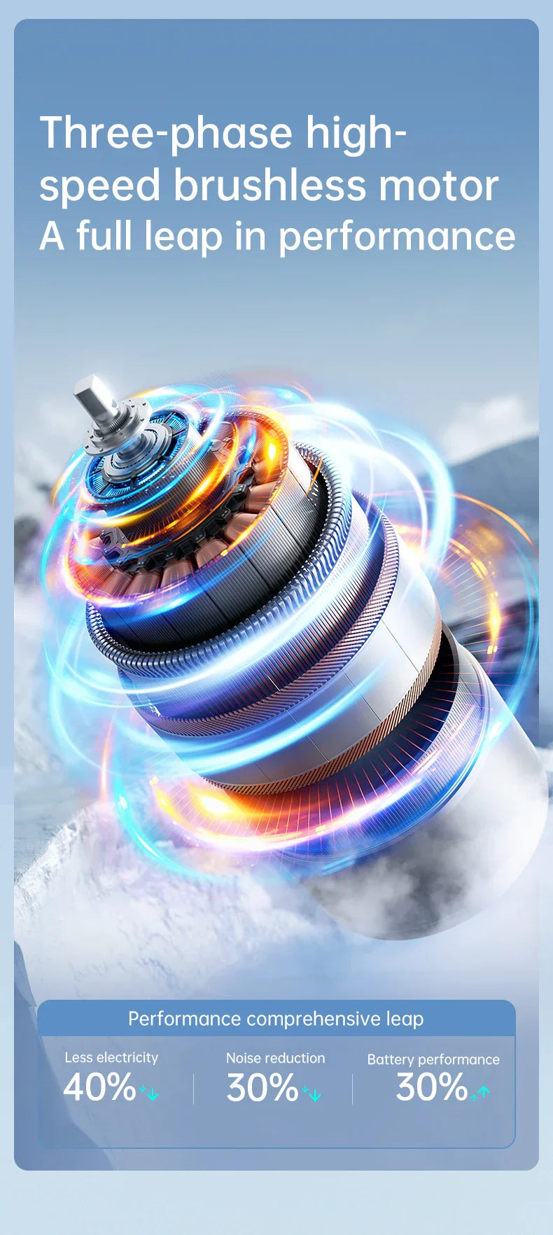 • 【Brushless Motor - Super Power】The combination of a three-phase brushless motor and a 5000mAh battery significantly improves the wind speed, power, and endurance. The maximum wind speed can reach 9m/s. The highest rotation speed of the handheld fan is three times that of a regular personal fan, reaching up to 15000 RPM.