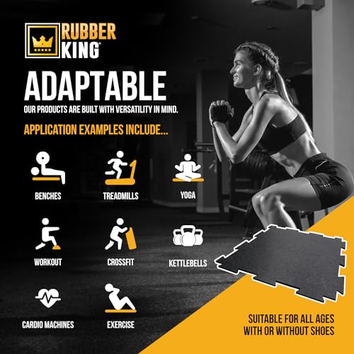 • ✅ EASY INSTALLATION & CUSTOMIZATION - Elevate your workout space effortlessly with our Rubber King Interlocking Tiles – the ideal exercise mat solution. Like a fitness puzzle, our Interlocking Tiles snap together easily by aligning the 'arrow' to face in the same direction. Interchangeable with other colors, these tiles offer easy customization for your home gym.