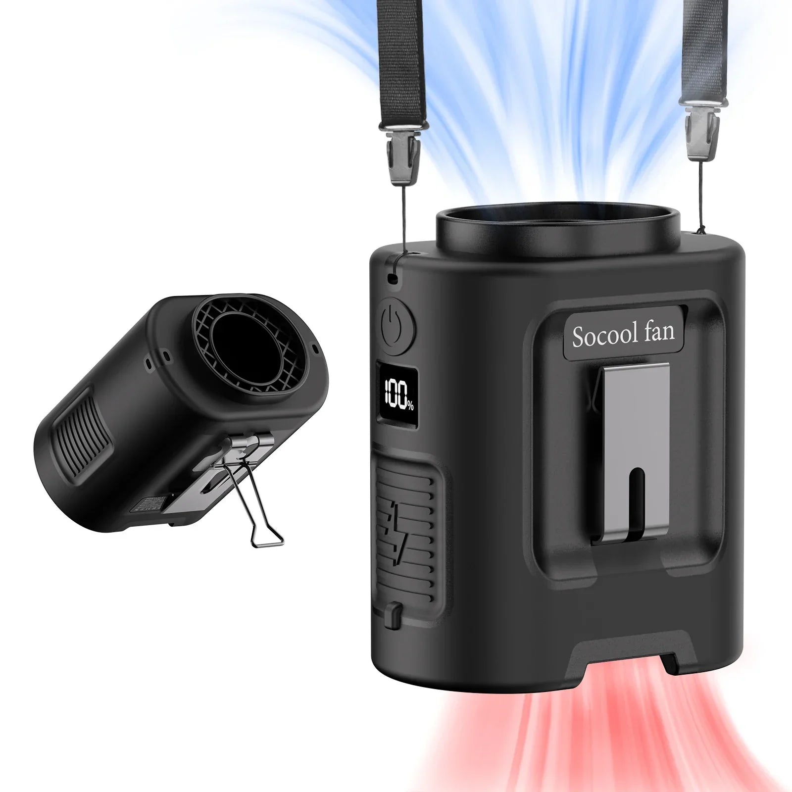 Waist fan features a practical design with two Manganese steel clamps facing opposite directions, providing versatile placement options. Clip a long clamp onto a belt to blow air under the shirt and a short clip to prevent your shirt from obstructing the airflow. The body fan comes with a high-quality protective silicone cover to protect against drops and damage, well-designed for various outdoor usage scenarios, catering to occupations like construction workers and farmers.