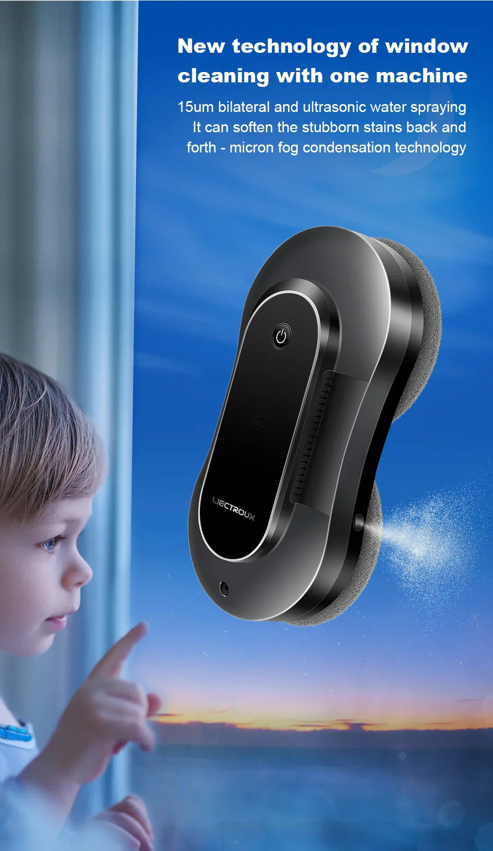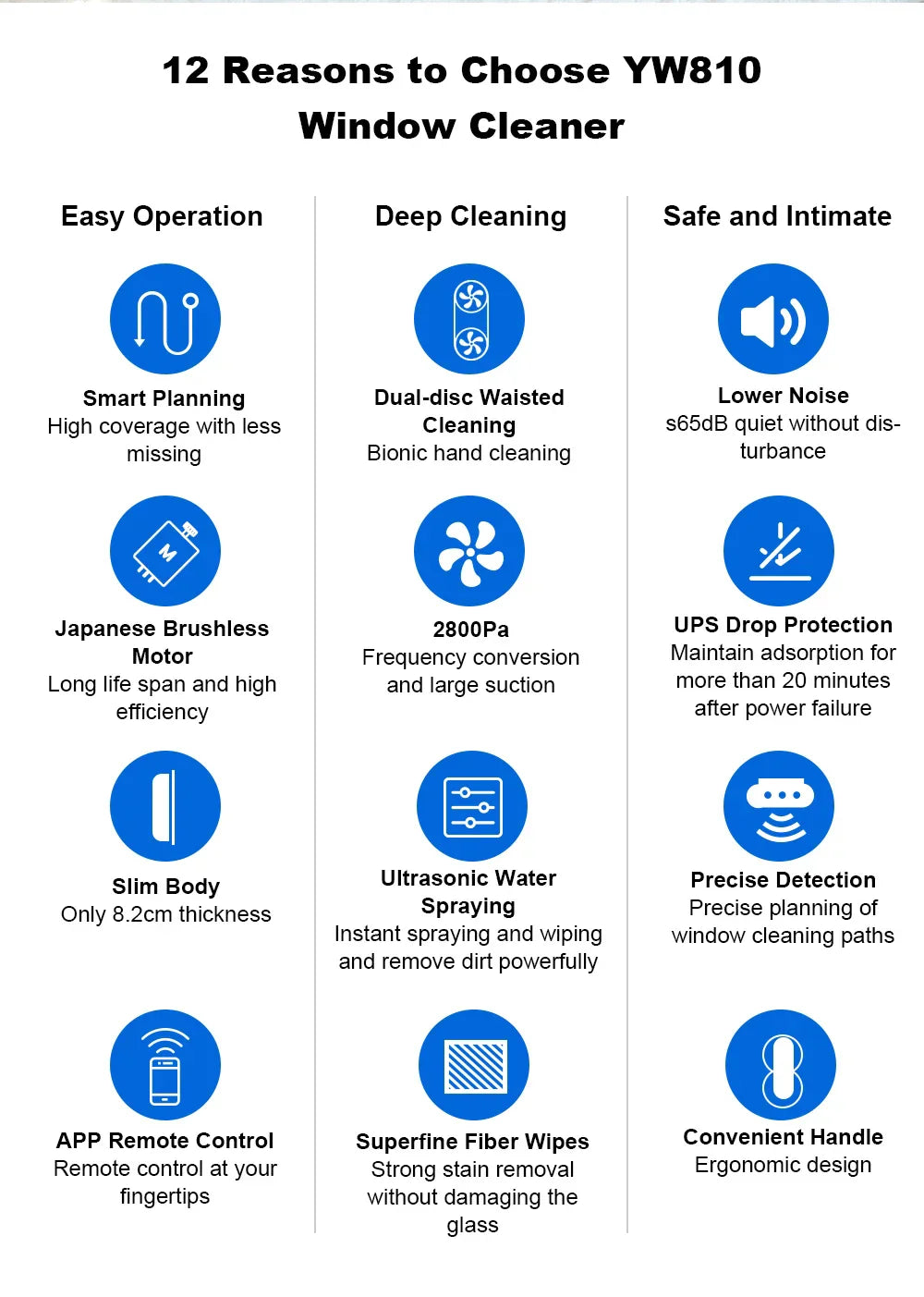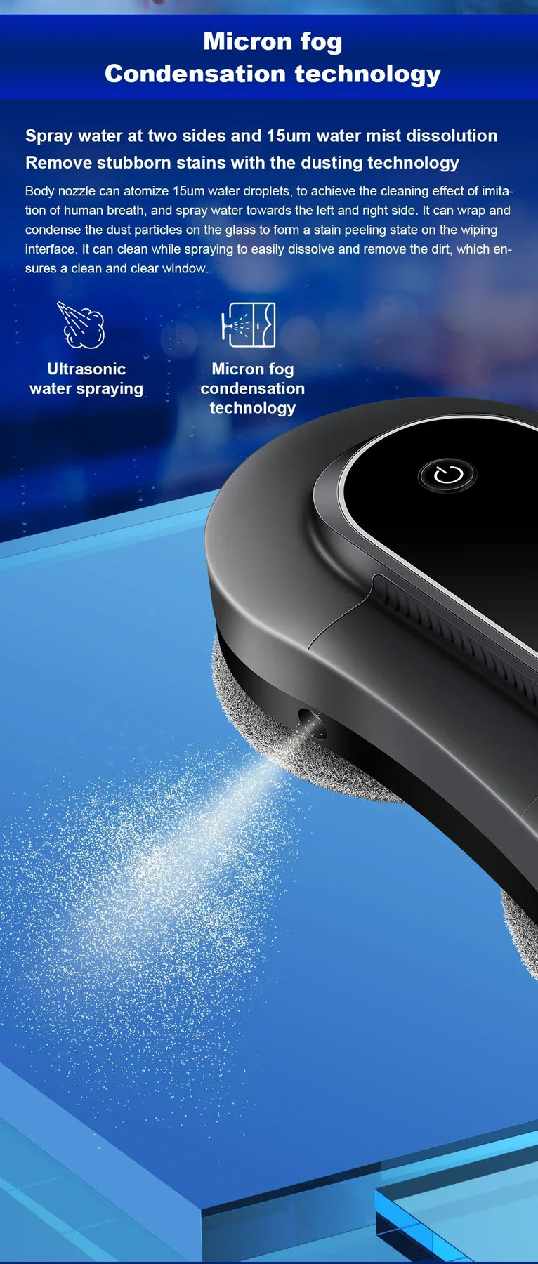 2500-3500 PA strong suction;. Firmly suck the window,more stable and safer.
