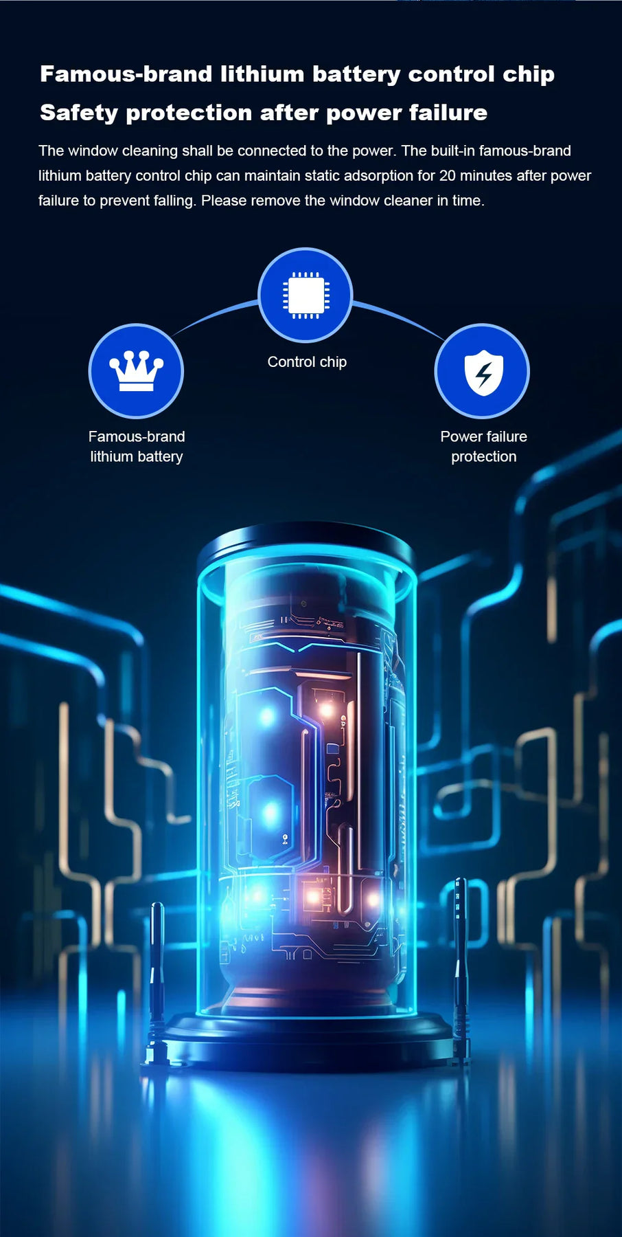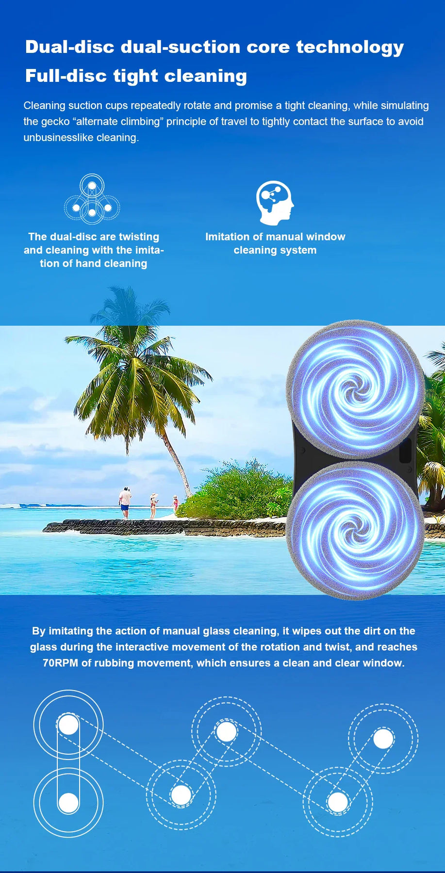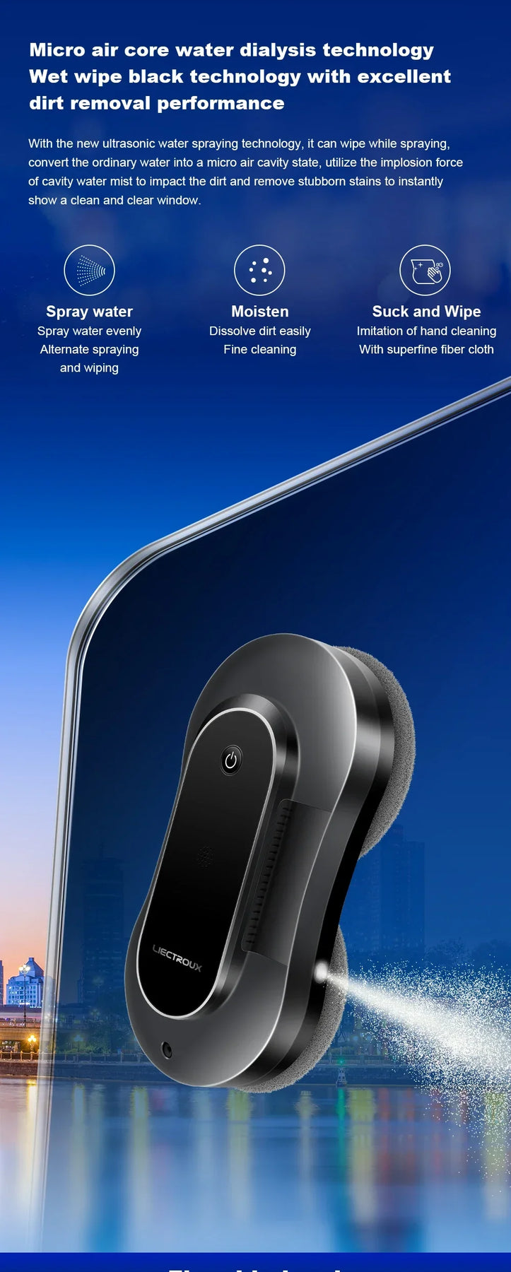 2500-3500 PA strong suction;. Firmly suck the window,more stable and safer.