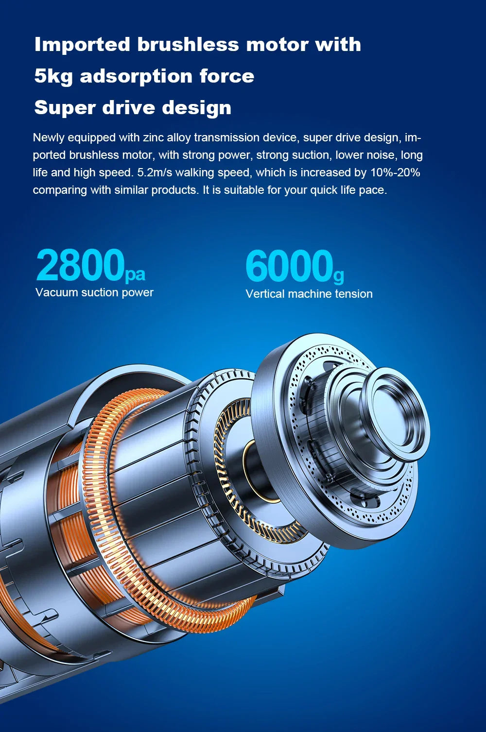 The automatic window cleaner is equipped with a Germanbrushless motor,