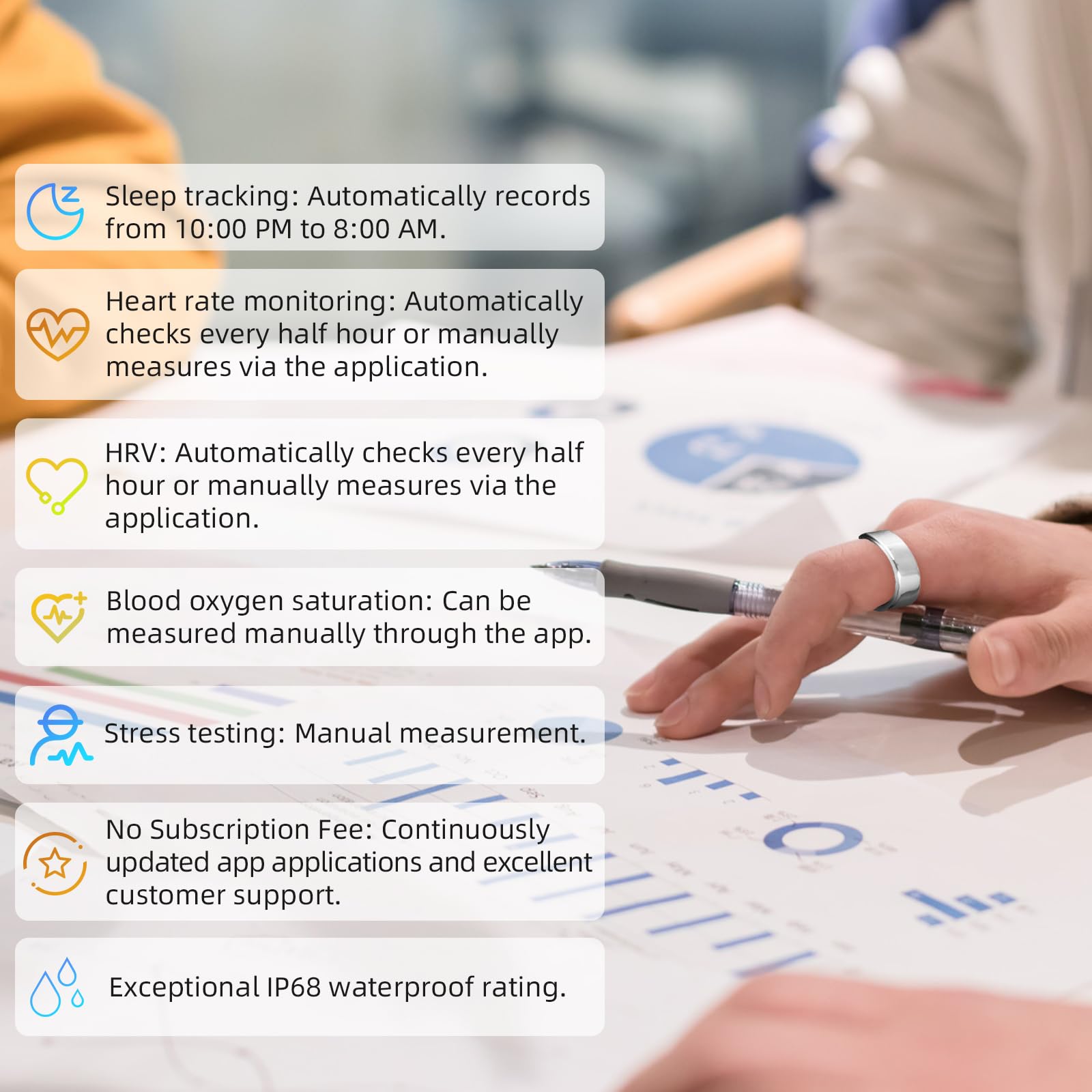 - 💍No Subscription Fees: Smart Ring health tracker data can be easily viewed via a mobile app without subscription fees. Smart Ring supports Android 5.0 and iOS 10.0 and above systems.